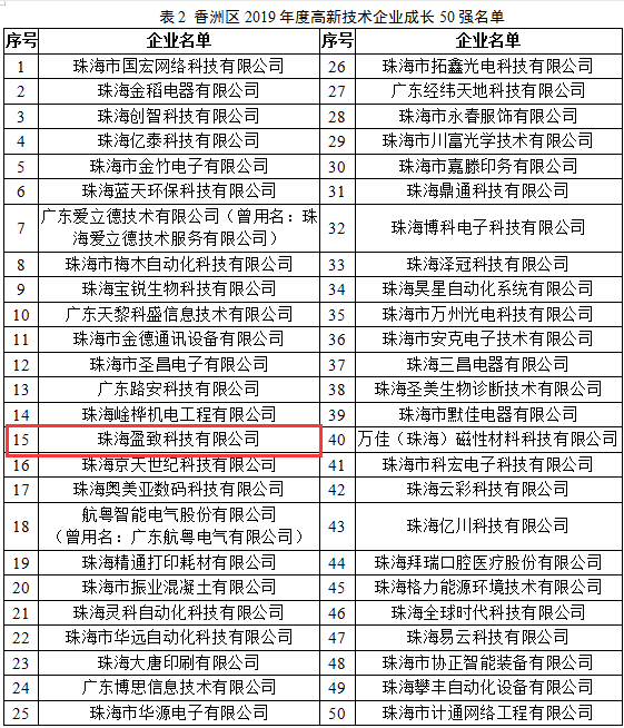 盈致科技上榜高新技術(shù)企業(yè)成長(zhǎng)50強(qiáng)