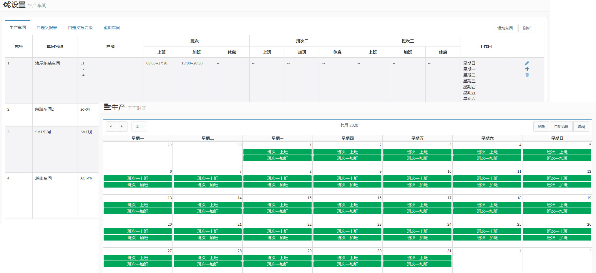 能夠根據人員組別數量提供一個按班次的工作分配計劃和管理反饋。